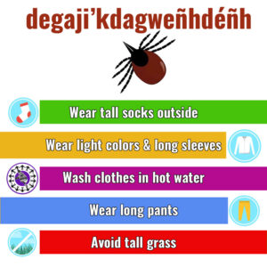 Warmer months bring Degaji’kdagweñhdéñh (ticks). Here are some tips to prevent tick bites.