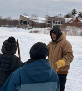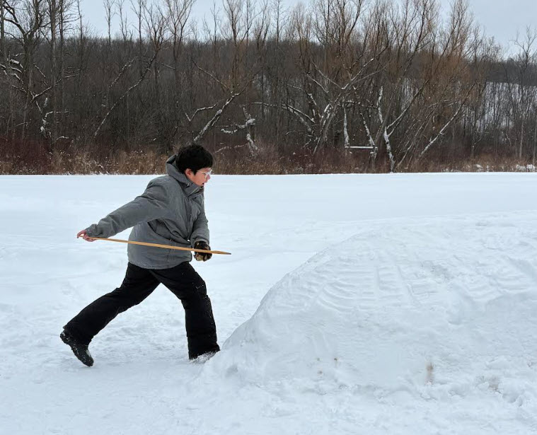 Booth and other members of the snow snake team come to the Onondaga Nation School (ONS) every year to share their joy of playing Snow Snake. They build a snow track and bring their hand crafted snakes. The snakes they bring are shorter than the longer snow snakes which the game originally began with. These snakes are shorter in length and are referred to as “mud cats”.