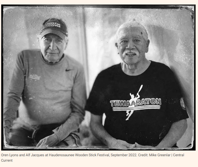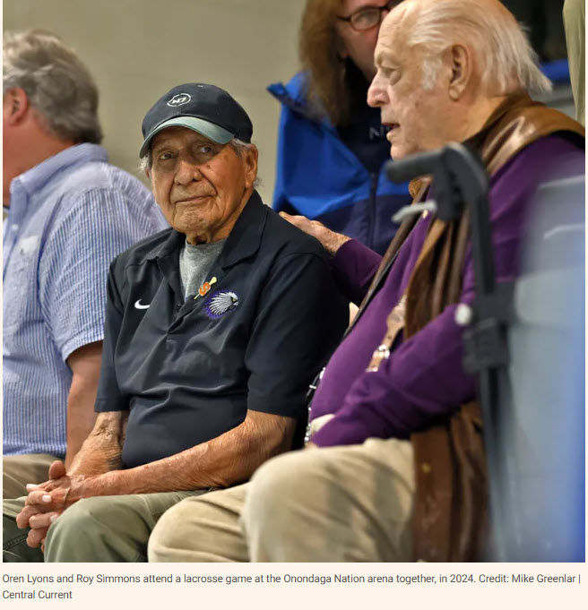 Oren Lyons and Roy Simmons Jr. have already experienced what might seem like the ultimate forms of tribute. There’s a building named for Lyons, an internationally renowned faithkeeper from the Onondaga Nation, at Syracuse University. A statue of Simmons, alongside a